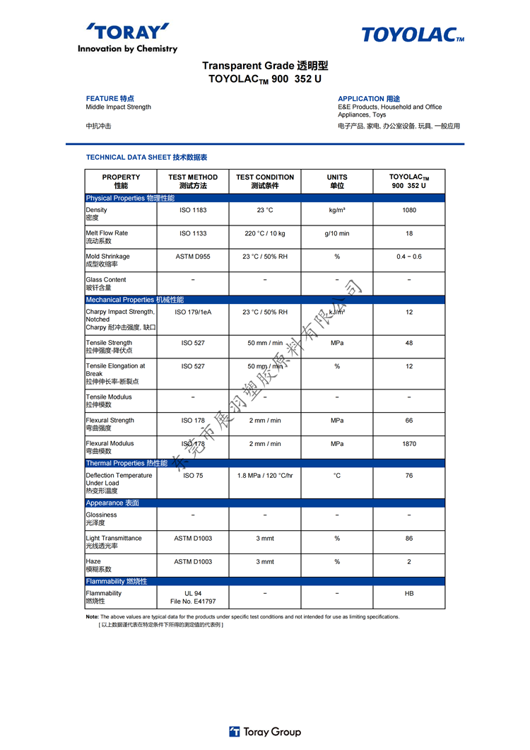 透明ABS 東麗 MABS 900 352 U 中抗沖擊 電子產(chǎn)品 辦公室設(shè)備 玩具應(yīng)用