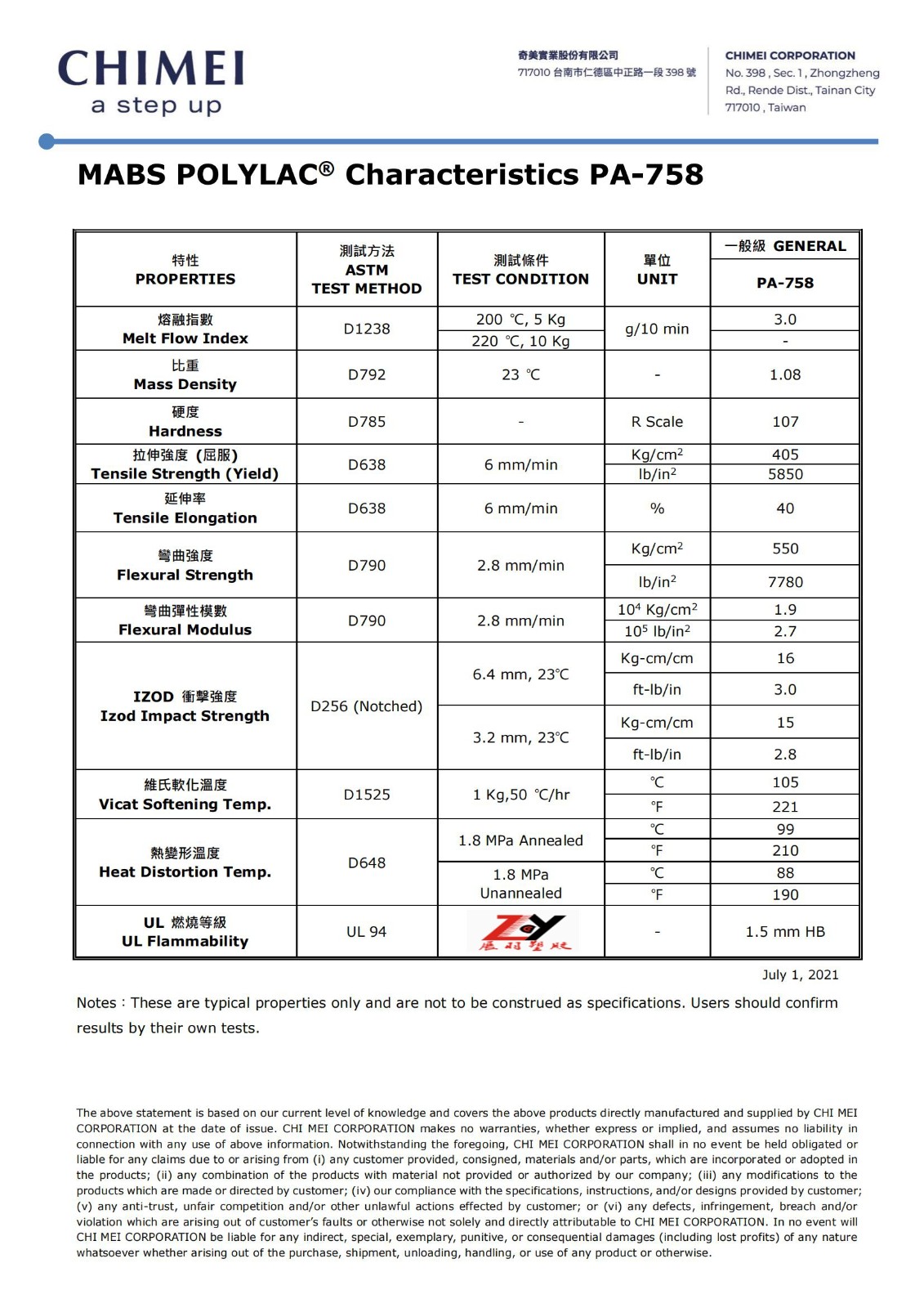奇美的 POLYLAC? PA-758 是一種甲基丙烯酸酯丙烯腈丁二烯苯乙烯 (MABS) 級產(chǎn)品。具有美觀穩(wěn)定的顏色、高流動性和良好的透明度。設(shè)計用于注塑成型方法。POLYLAC? PA-758 推薦用于空調(diào)面板、洗衣機罩、吸塵器外殼、3c 產(chǎn)品外殼、家用電器和文具。亦適用于制造電腦周邊、家用電子產(chǎn)品及玩具。符合 PFOA、PFOS、RoHS 和 UL 94 HB 阻燃等級。