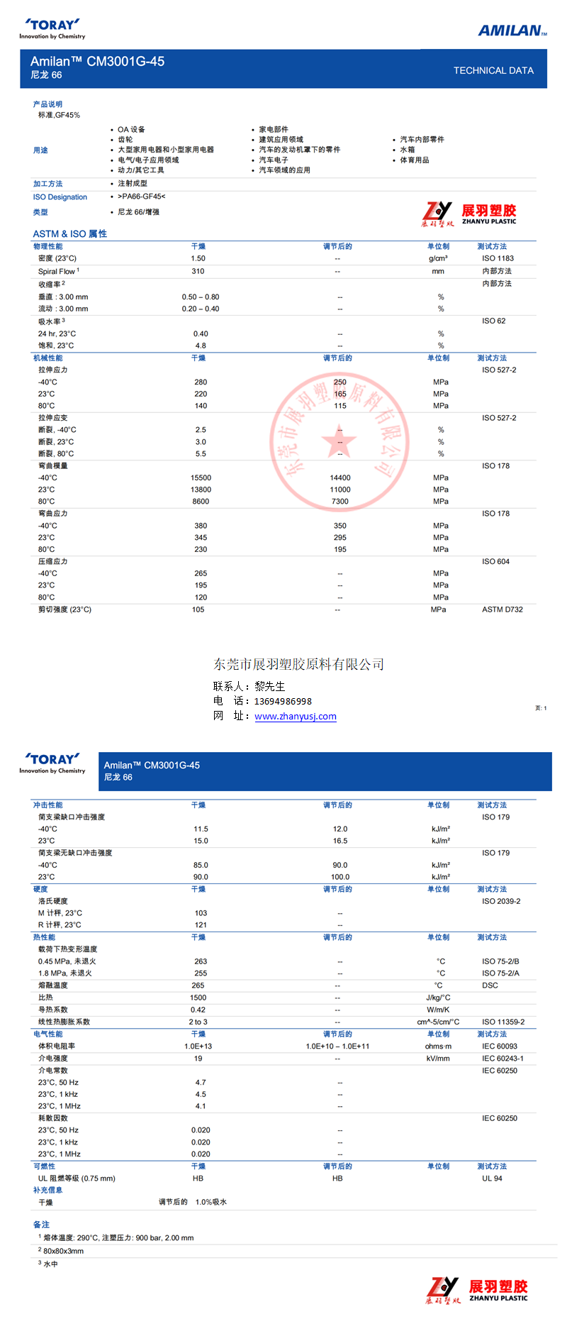 阻燃等級(jí): HB 缺口沖擊: 11.5 kJ/m2 熱變形溫度: 263 °C 符合規(guī)定: UL