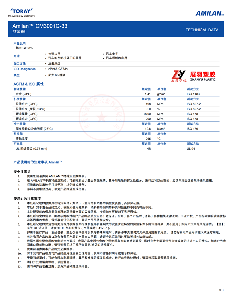 東麗 Amilan? PA66 CM3001G-33