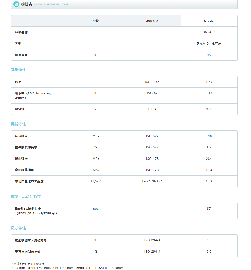 可樂麗 Genestar? PA9T GN2450 >PA9T-GF45-FR< 阻燃等級: V-0 缺口沖擊: 13.9 kJ/m2 符合規(guī)定: UL