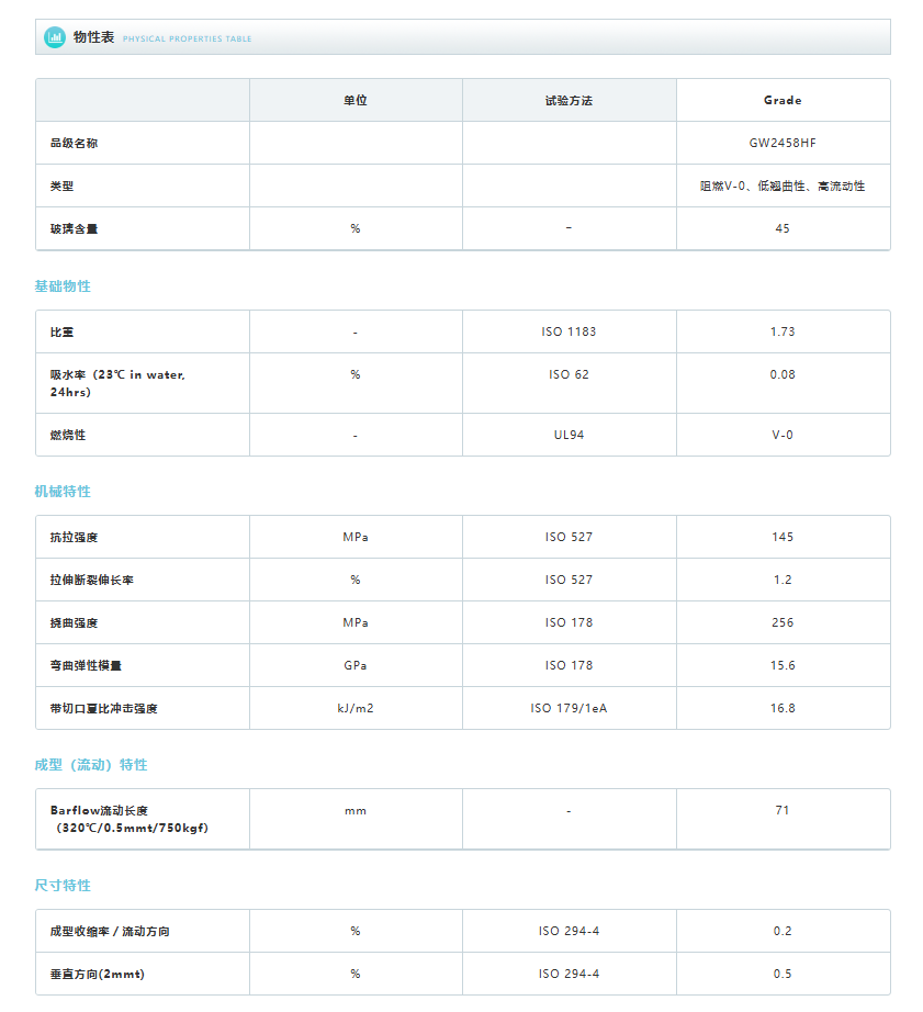 它表現(xiàn)出優(yōu)異的高流動(dòng)性與低翹曲的平衡。它被設(shè)計(jì)用于注塑成型加工。