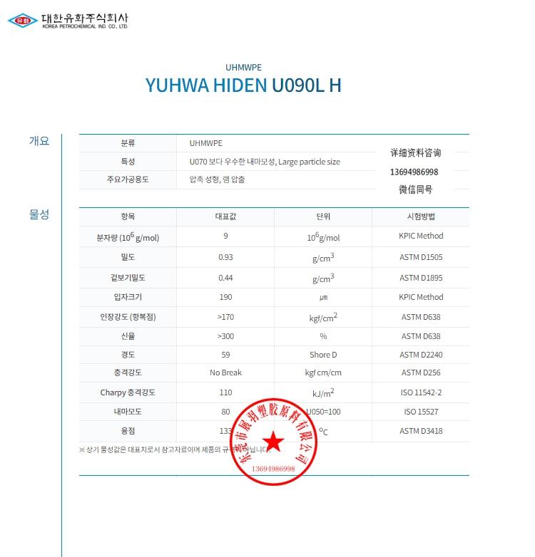 UHMWPE 大韓油化 YUHWA HIDEN U090L H 超高分子量聚乙烯 壓縮成型和壓擠應用