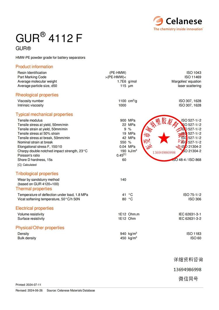 UHMWPE粉末級 塞拉尼斯 GUR 4112 F 超高分子量聚乙烯 電池隔膜用