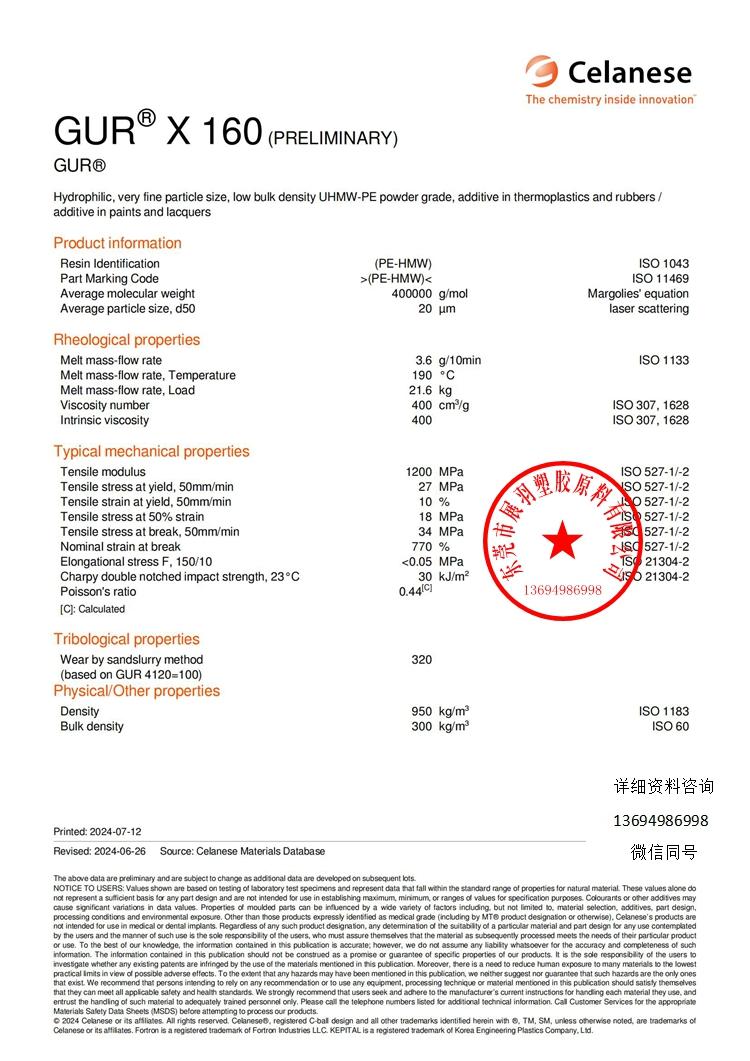 塞拉尼斯 GUR X160 超高分子量聚乙烯 親水性 極細(xì)粒度 低堆積密度 HMWPE粉末級(jí)
