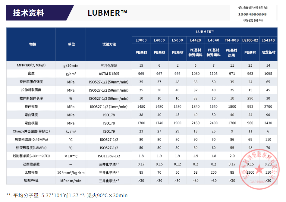 LUBMER L3000 三井化工 UHMWPE 超高分子量聚乙烯 電絕緣 噪聲阻尼