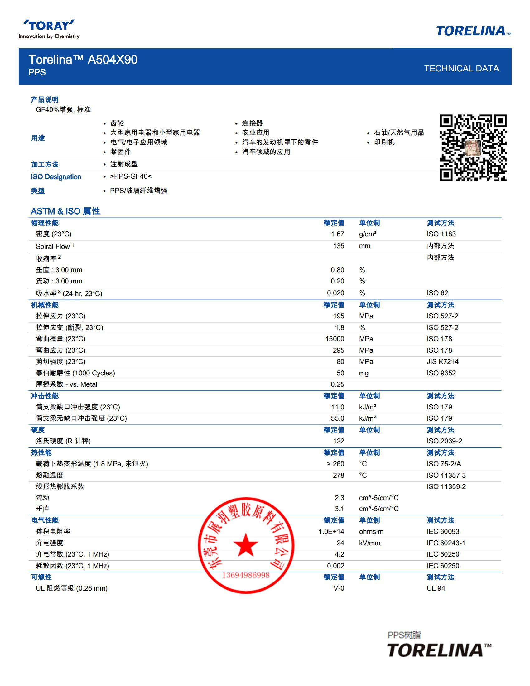 TORELINA A504X90 Toray 阻燃性 耐化學(xué)性 40%玻璃纖維 聚苯硫醚(PPS)