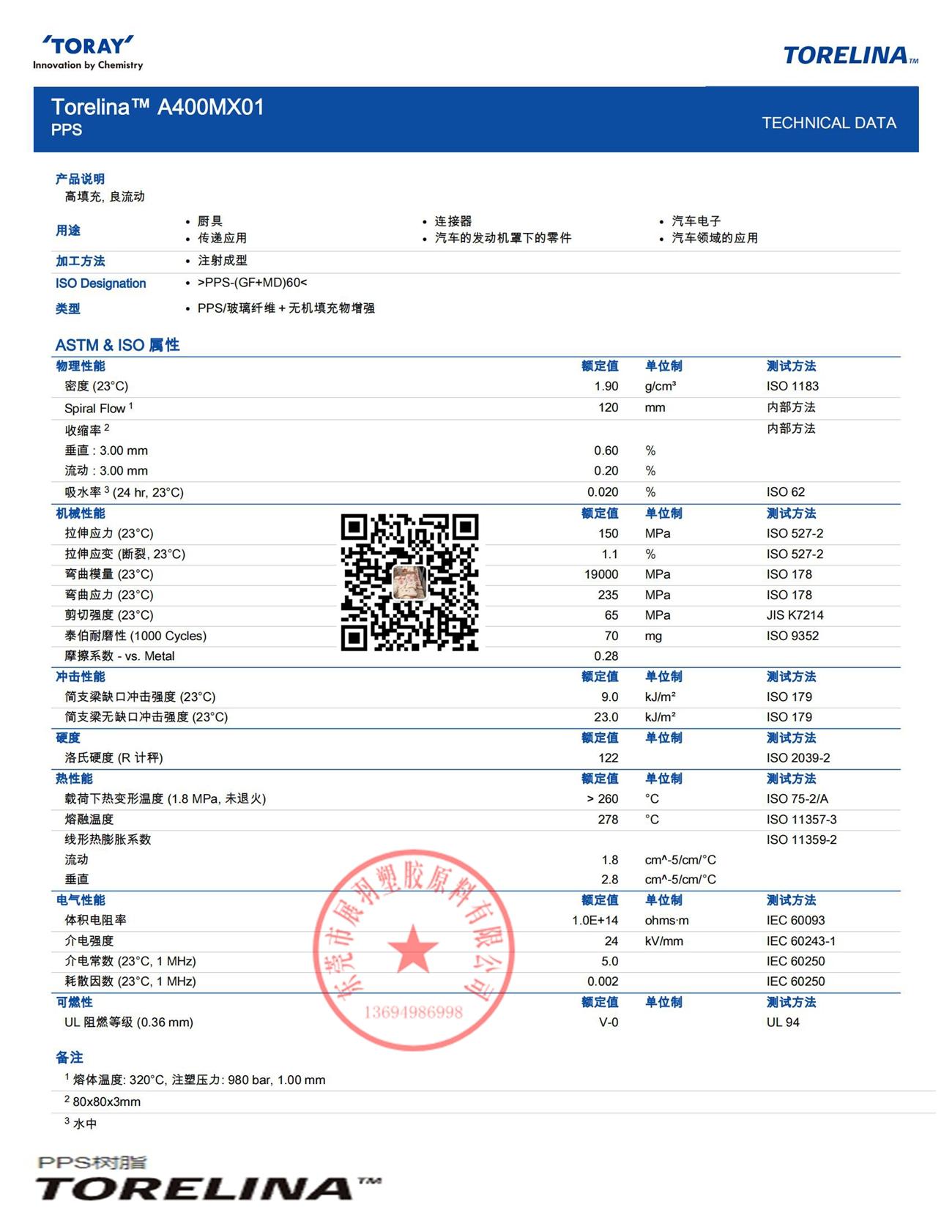 TORELINA A400MX01 Toray PPS-(GF+MD)60 聚苯硫醚 60%礦物玻璃增強