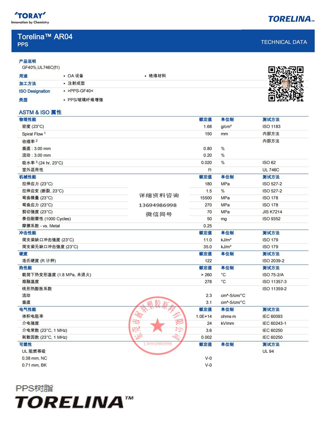 TORELINA AR04 Toray 40%玻纖增??強 聚苯硫醚 (PPS-GF40) OA設備 絕緣材料