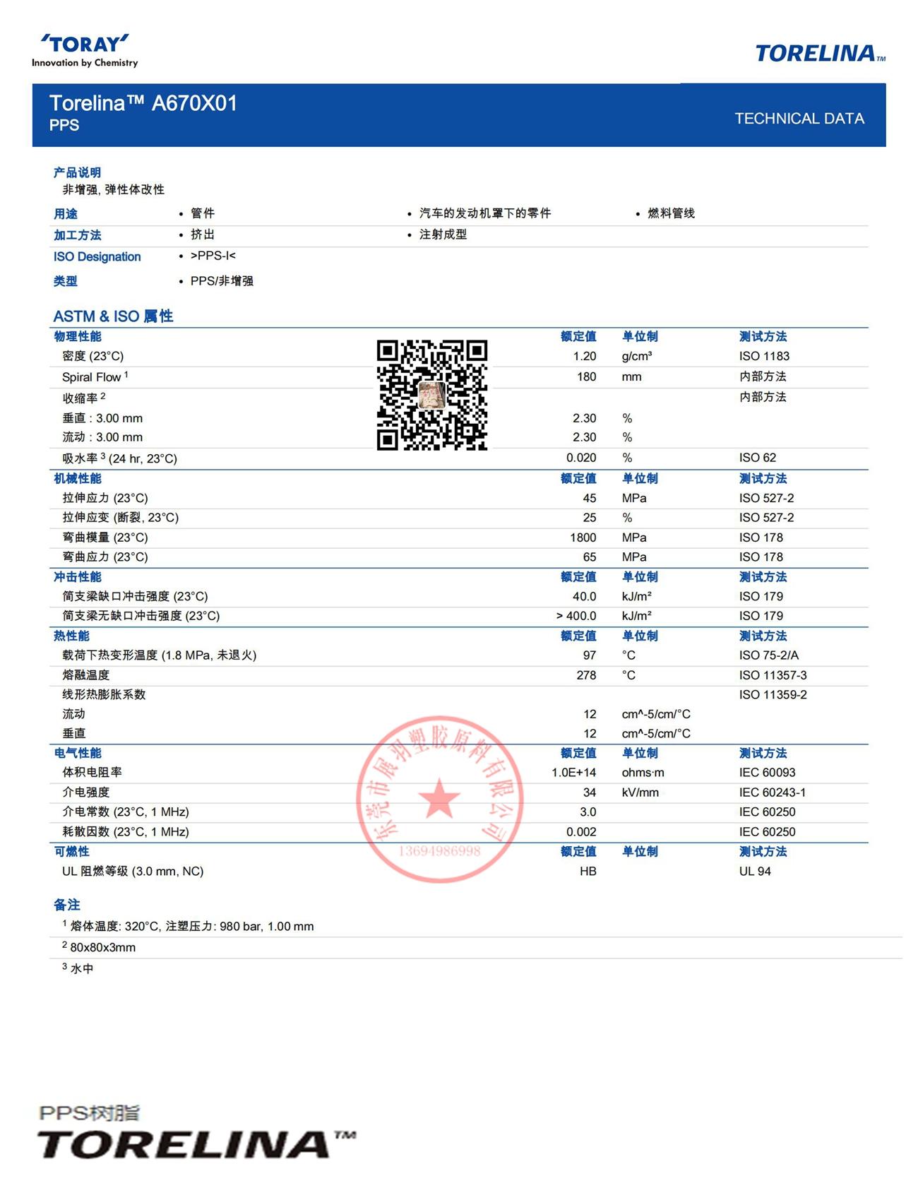 Torelina A670X01 Toray 耐熱性 阻燃性 耐化學(xué)性 彈性體改性 聚苯硫醚 (PPS)