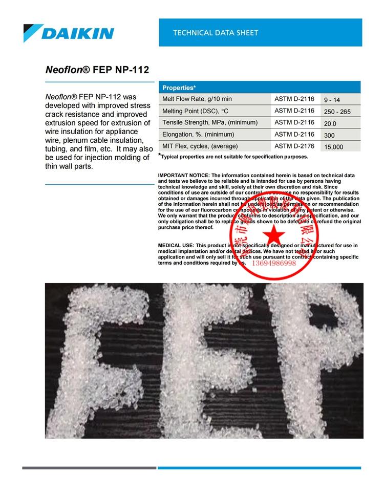 NEOFLON FEP NP-112 Daikin 聚全氟乙丙烯(氟化乙烯丙烯共聚物)