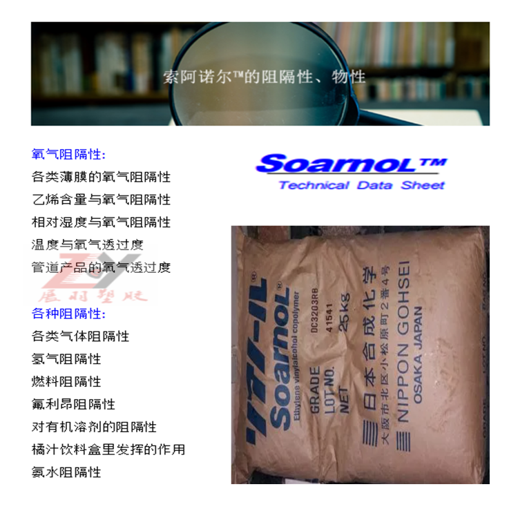 索阿諾爾(EVOH)乙烯-乙烯醇共聚樹脂 高阻氣性樹脂說明