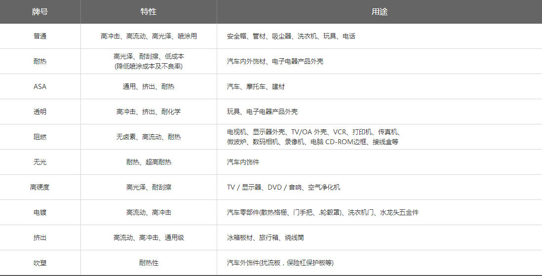 韓國(guó)LG化學(xué)ABS牌號(hào)介紹