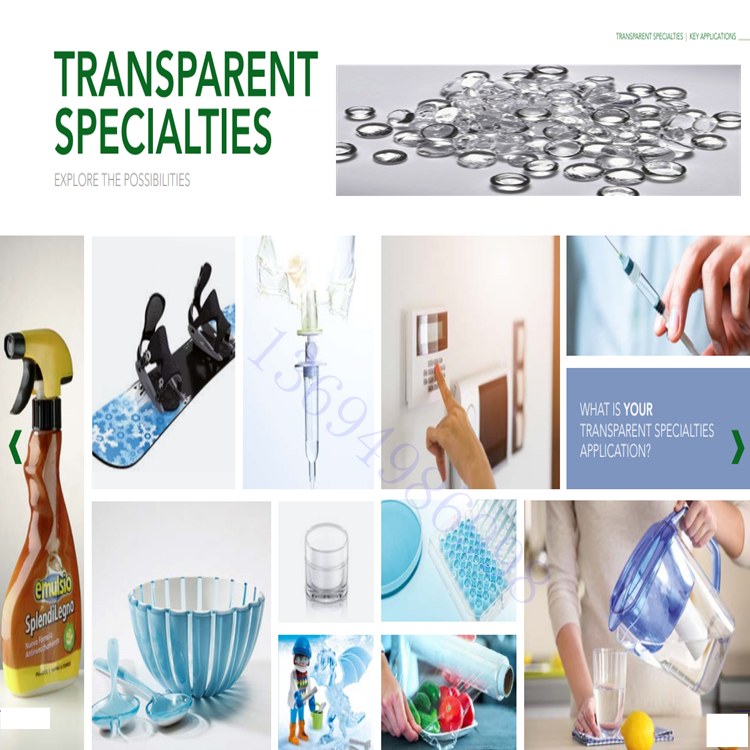 SMMA熱穩(wěn)定性較佳,可利用的再生料較多可達(dá)100%。比重較輕,生產(chǎn)同等數(shù)量制品可以比其它透明塑料減省用料多達(dá)20%。SMMA(在大多數(shù)情況下)無(wú)須進(jìn)行干燥處理,減少用電成本,提高生產(chǎn)效能。成型周期較快,較多可縮短50%的時(shí)間,因而提高機(jī)器利用率。注塑加工溫度較低,較多可降低攝氏65度(華氏150度),因而降低用電成本。 注塑加工容易,減少操作人員培訓(xùn),制品成品率高,能有效控制生產(chǎn)成本。折射率比PMMA高,令制成品具有極佳的晶瑩度。