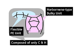 APEL 具有高密度、大體積的結(jié)構(gòu),是一種僅由 C&H 組成的降冰片烯型,具有無(wú)定形、光學(xué)各向同性和非極性。