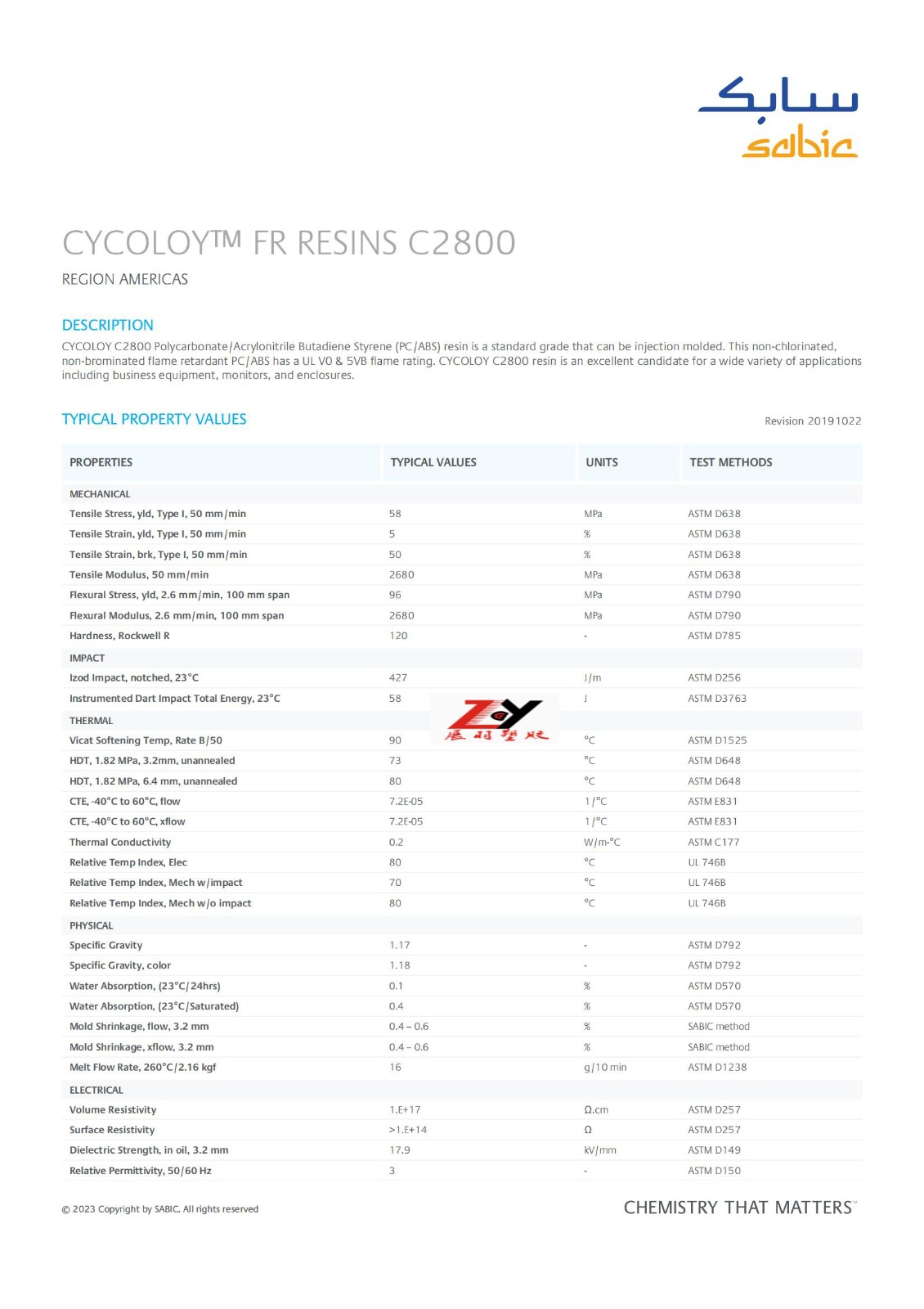 CYCOLOY C2800 物性參數(shù)表 SABIC沙伯基礎(chǔ),CYCOLOY? FR RESINS C2800,PC/ABS沙伯基礎(chǔ)C2800物性表,  SABIC C2800物性表。聚碳酸酯/丙烯腈丁二烯苯乙烯