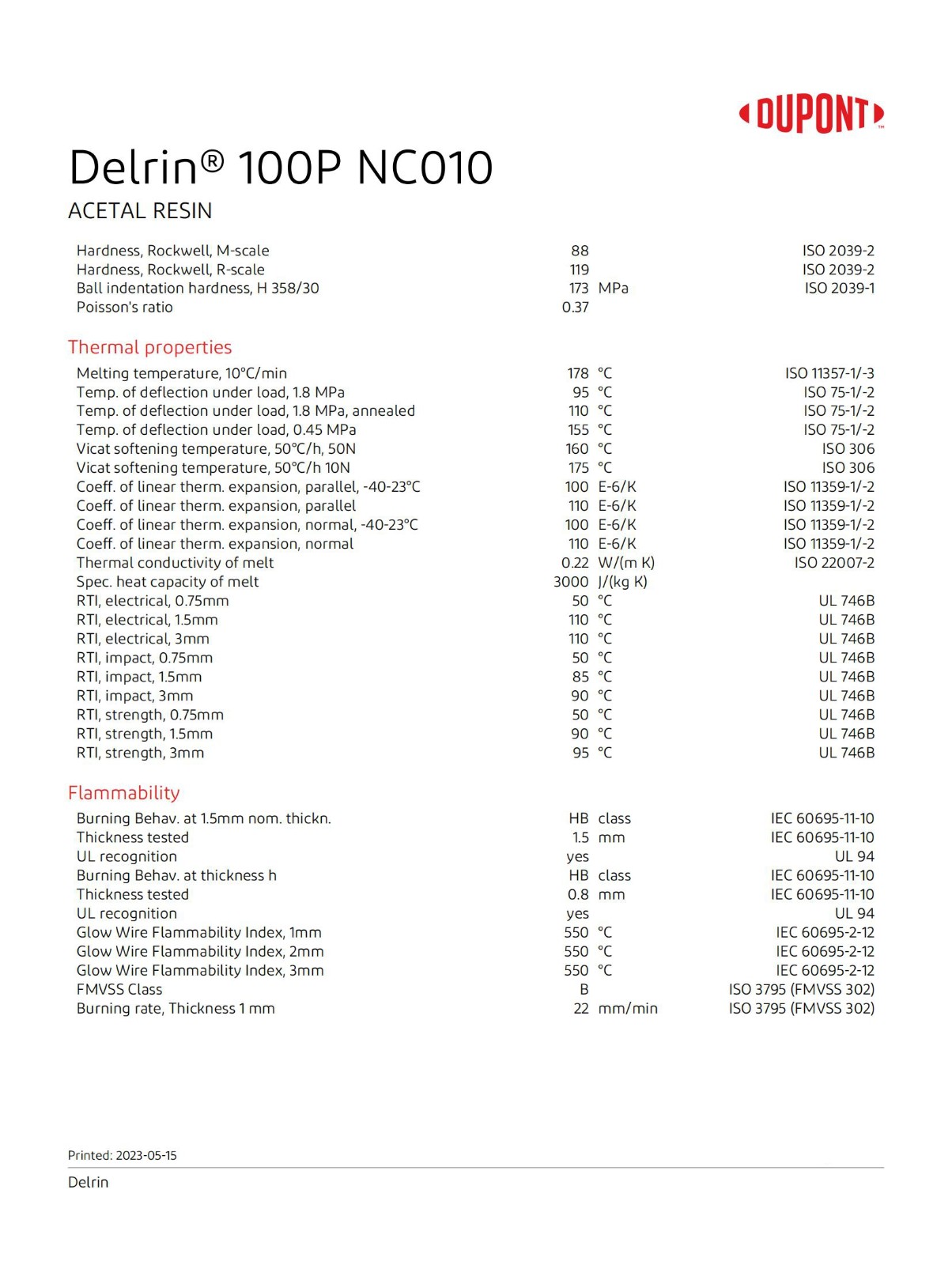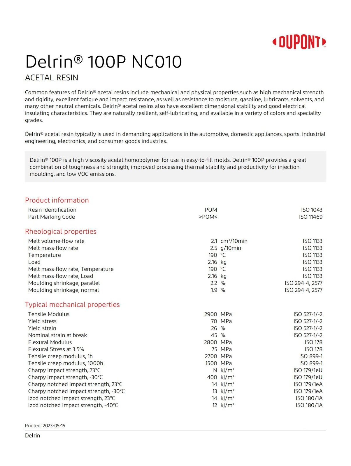 Delrin 100P NC010英文物性表, POM100P物性表,美國(guó)杜邦100P物性數(shù)據(jù),聚甲醛100P原廠物性表。