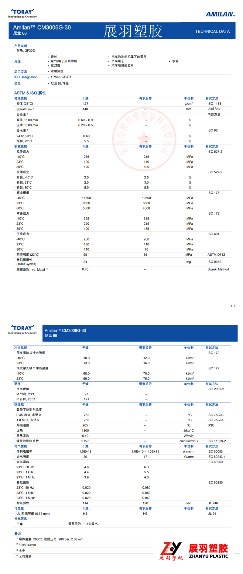 東麗 Amilan CM3006G-30 耐熱級(PA66-GF30)玻纖增強(qiáng)30% 聚酰胺66